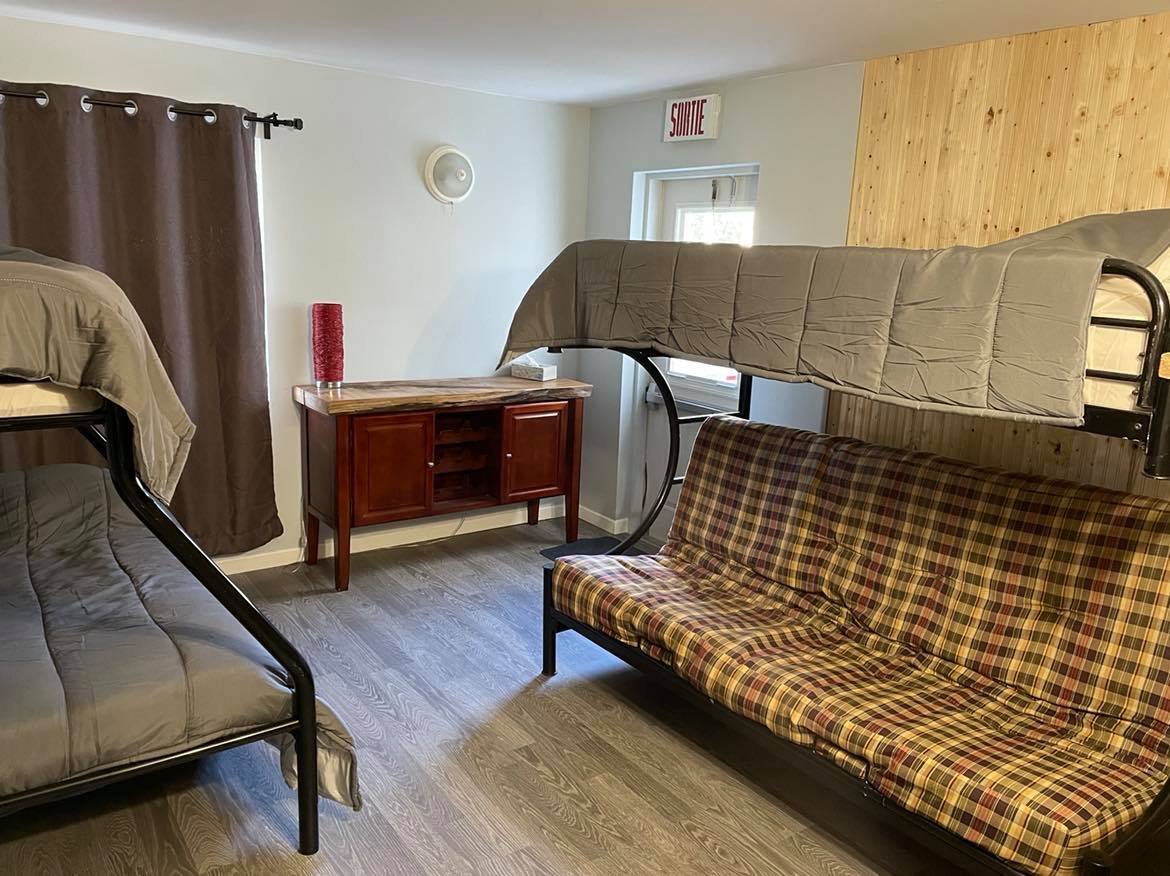 - Salon (2 futons dont 1 avec lit simple superposé)